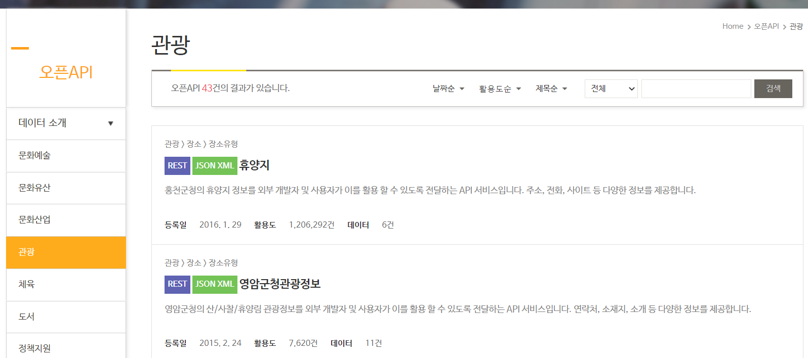문화체육관광부에서 운영하는 오픈API 포털입니다.