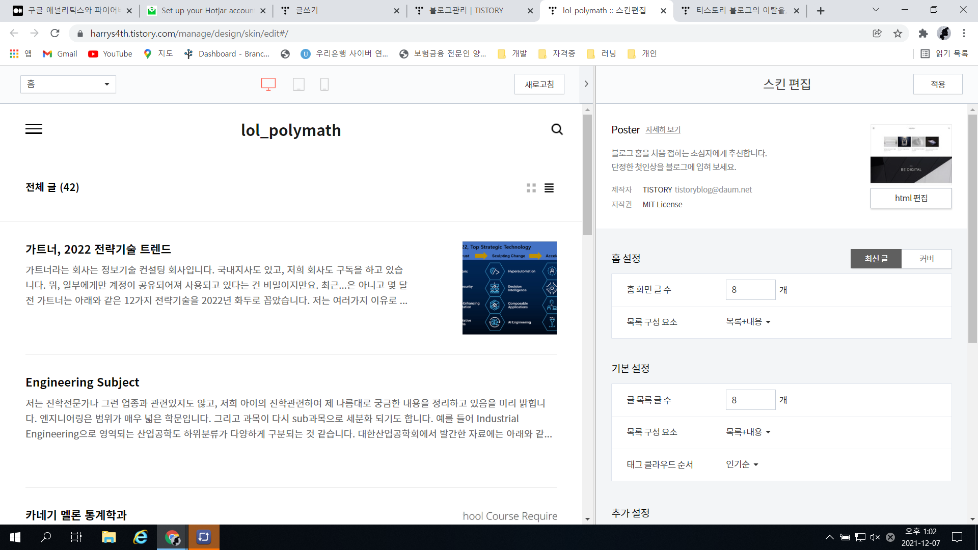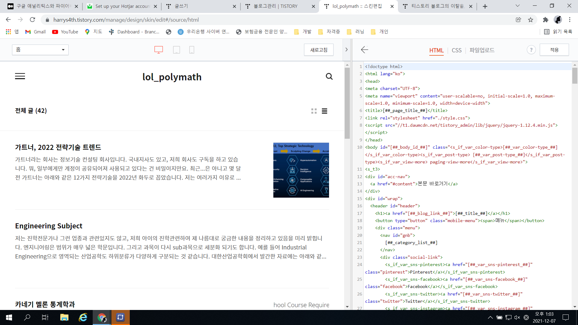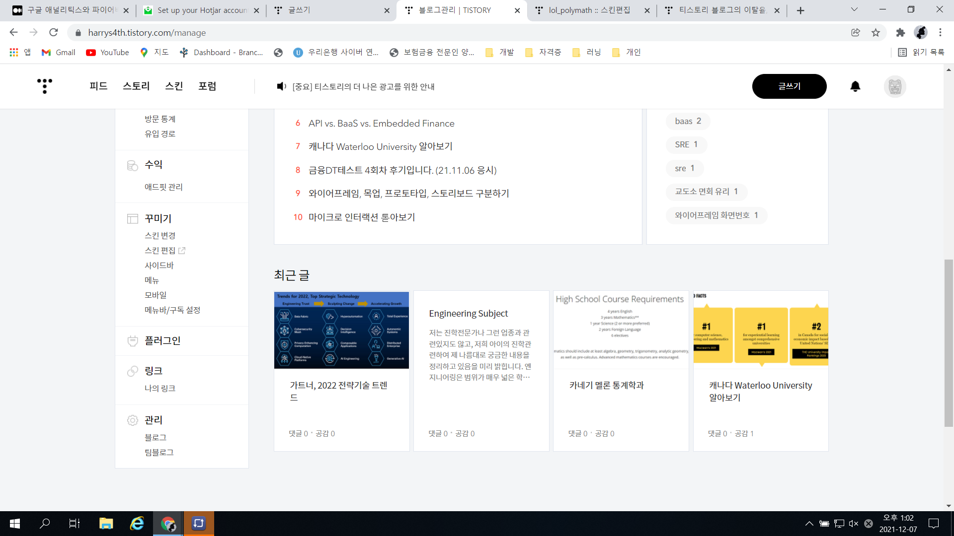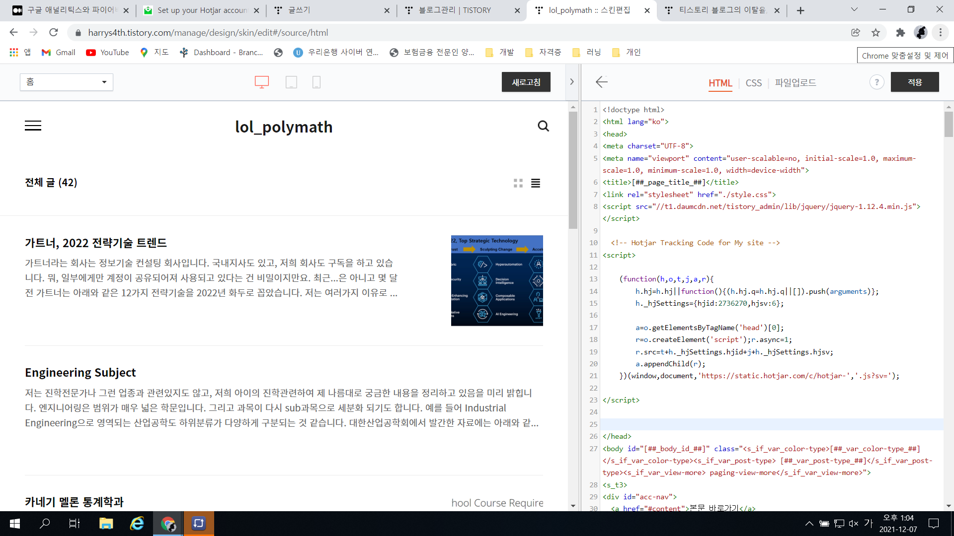 지금부터 핫자를 티스토리에 적용하는 방법을 설명드리겠습니다. 진행하는 모든 화면을 캡처했으니 그대로 따라하시면 됩니다. 다른 플랫폼 서비스나 회사의 사이트에 적용하는 것도 동일한 방식이니 조금만 응용하시면 됩니다..