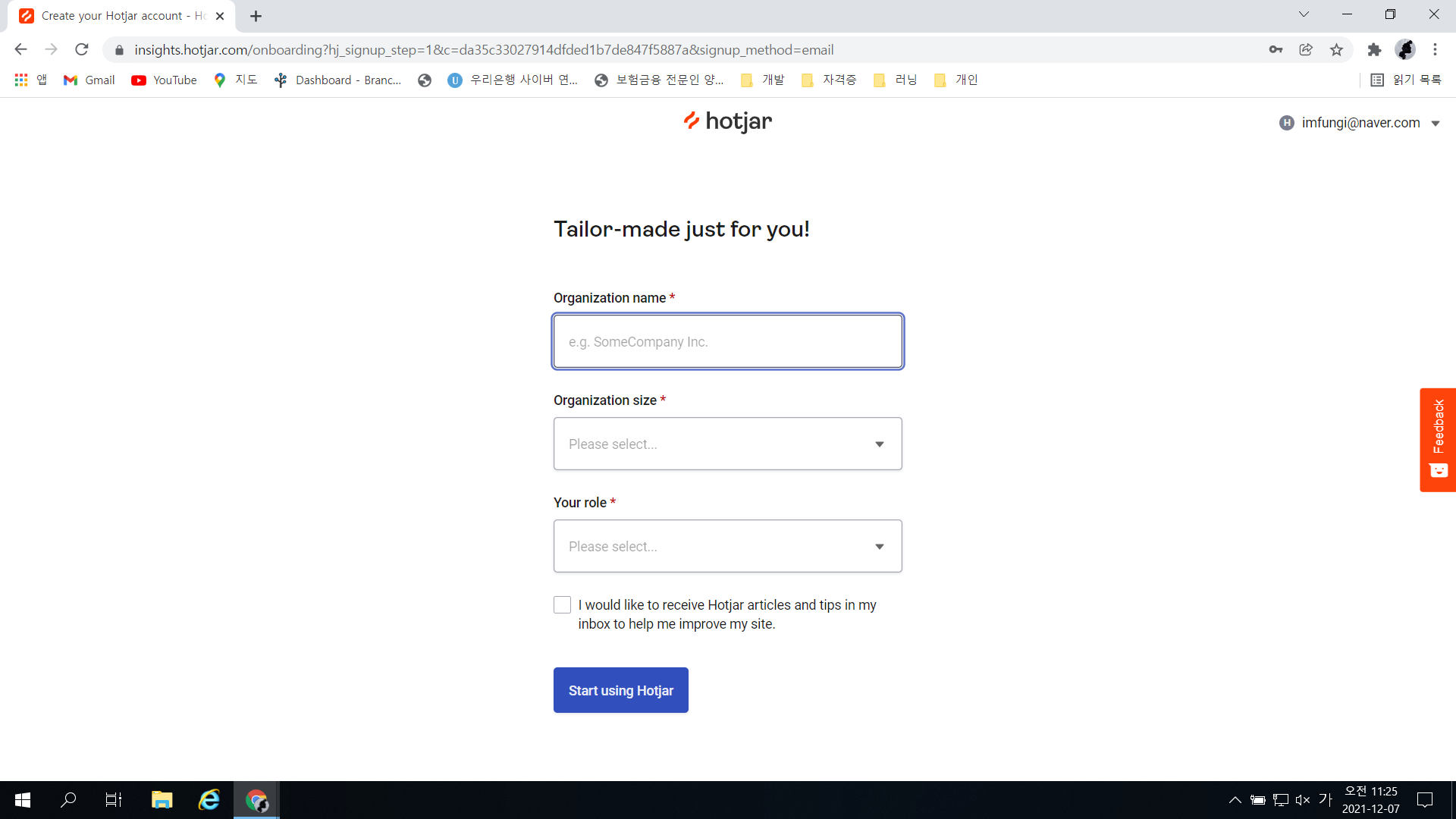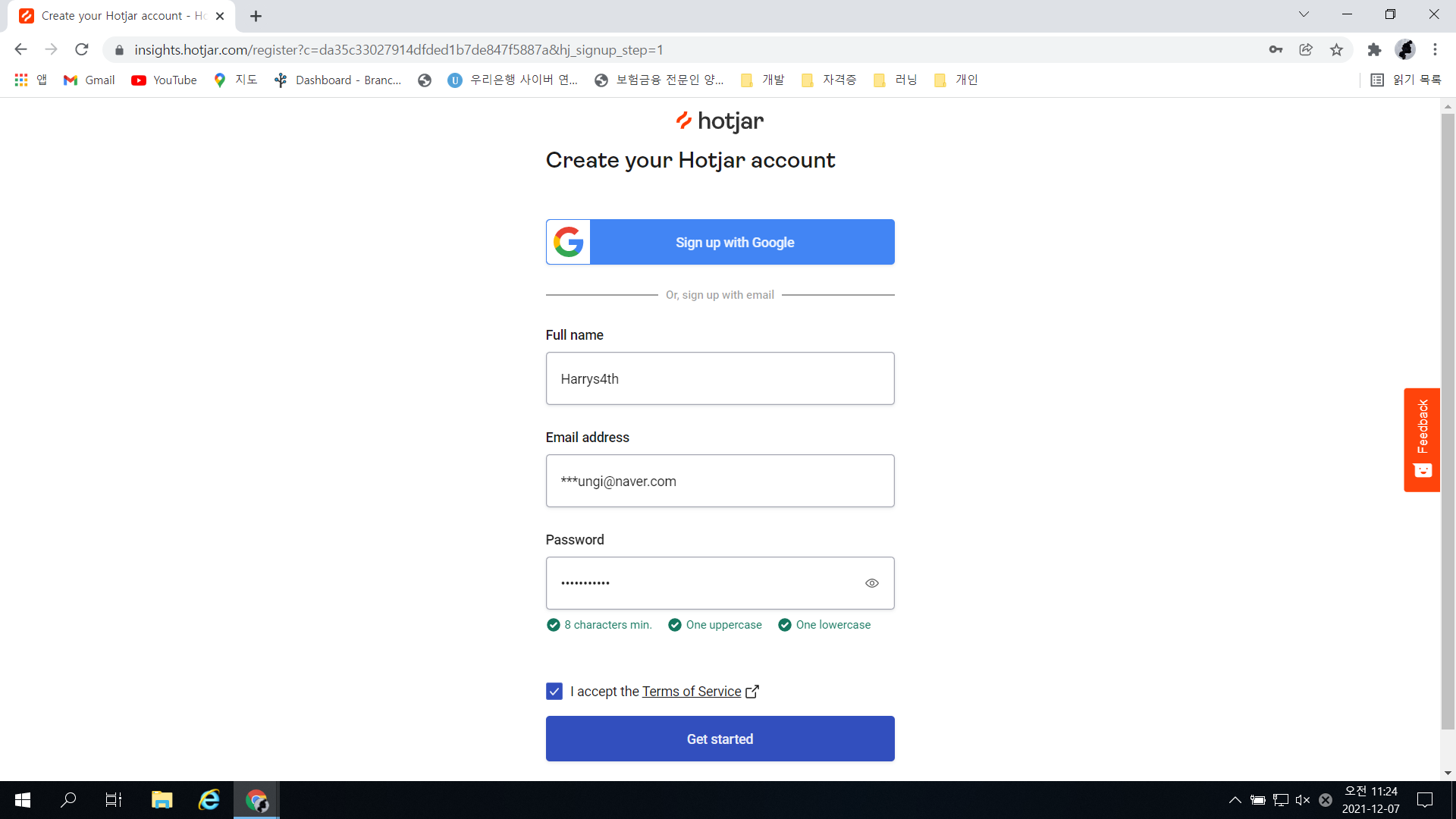 2. 구글이메일 또는 본인이 사용하는 이메일로 가입합니다.